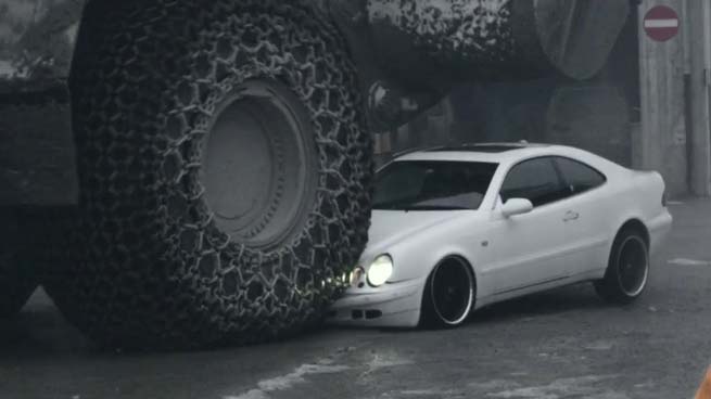 Στην αρχή θα δείτε τον δημοσιογράφο να παίρνει συνέντευξη από έναν εργαζόμενο, όταν ξαφνικά η κάμερα κινείτε προς τον εκσκαφέα καταγράφοντας ολόκληρη την διαδικασία μετατροπής του αυτοκινήτου σε… παλιοσίδερα.