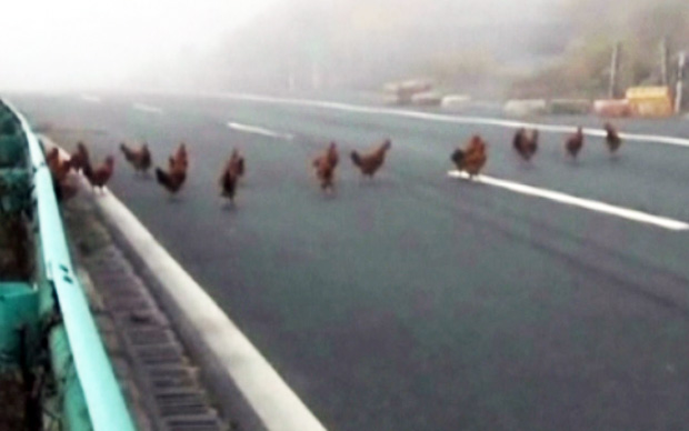 Εκατοντάδες κότες «το έσκασαν» από φορτηγό που τις μετέφερε, όταν αυτό ανετράπη σε αυτοκινητόδρομο στην Κίνα.