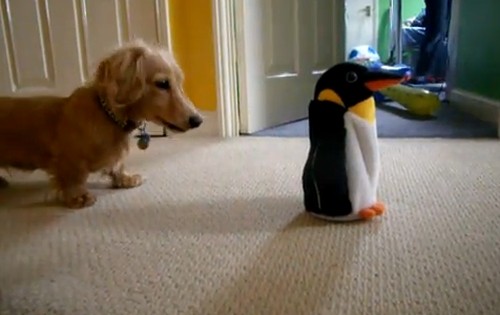 Αυτό το Ντάτσχουντ φαίνεται πως είναι περισσότερο μπερδεμένο παρά ευχαριστημένο με το λούτρινο πιγκουινάκι φίλο του!